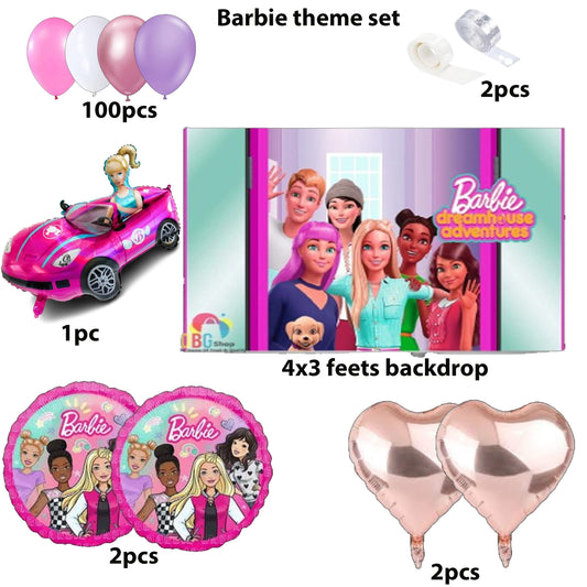 Barbie Car Theme Birthday & Party Decorations, Full Set of Balloons & Items