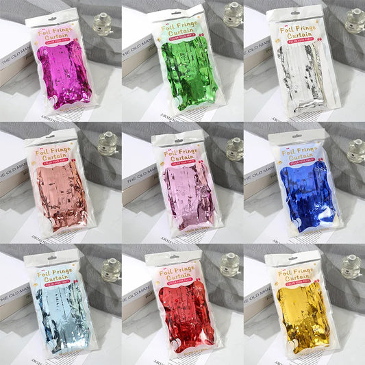 1_2m Multi-Size Colorful Metal Foil Tassels Curtain for Wedding & Party Background Decoration for Festive Events & Celebrations