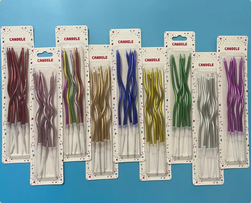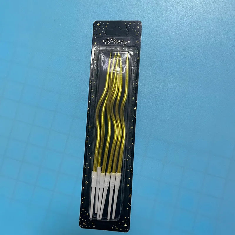 Happy Birthday 6pcs Spiral Candle Birthday Party Metallic Curve Candle for Cake Decoration
